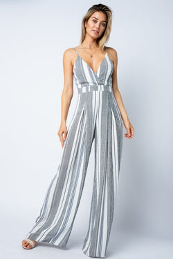 Fashion Summer Strap Off White Multi-Color Contrast Back Tie-Up Jumpsuit