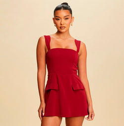 Indulge in the luxury of our Fashion Wine Strap Pocket Detailed Romper. This exquisite romper features a sleek wine color, delicate straps, and functional pockets. Perfect for any occasion, this romper is the epitome of sophistication and elegance, making you the center of attention wherever you go.