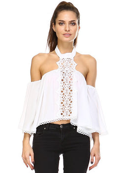 Lace Halter Off Shoulder White Top