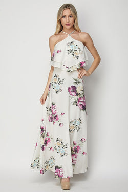 Summer Floral Print Layered Maxi Dress